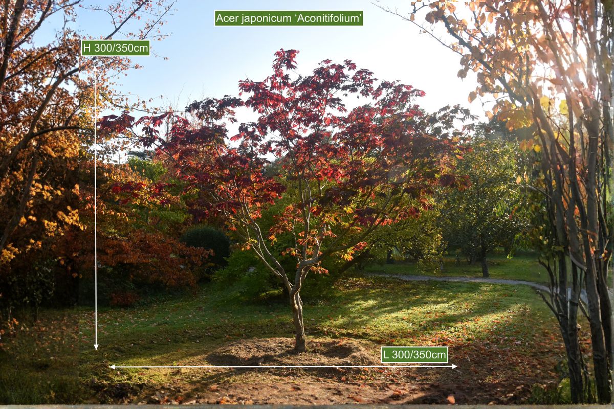 Un ‘must have’ au port équilibré pour cet érable du Japon très populaire. Particulièrement apprécié pour ses grande feuilles rappelant l’aconit, ses colorations d’automne, précoces, enflamment le jardin de rouge et de pourpre.