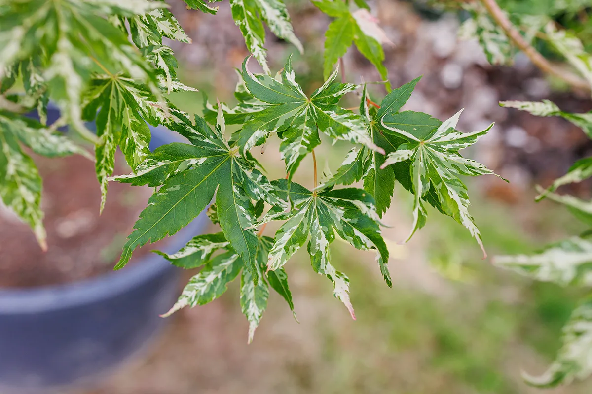 Érable du Japon très prisé pour l’élégance de son feuillage lobé, son port gracieux et ses couleurs d’automne. Feuillage panaché rose vert et blanc au printemps et en été, puis rouge orangé à l’automne. Son nom signifie ‘le brocart d’Aizumi’.Une plantation en mi-ombre est recommandée pour profiter pleinement de son feuillage panaché.