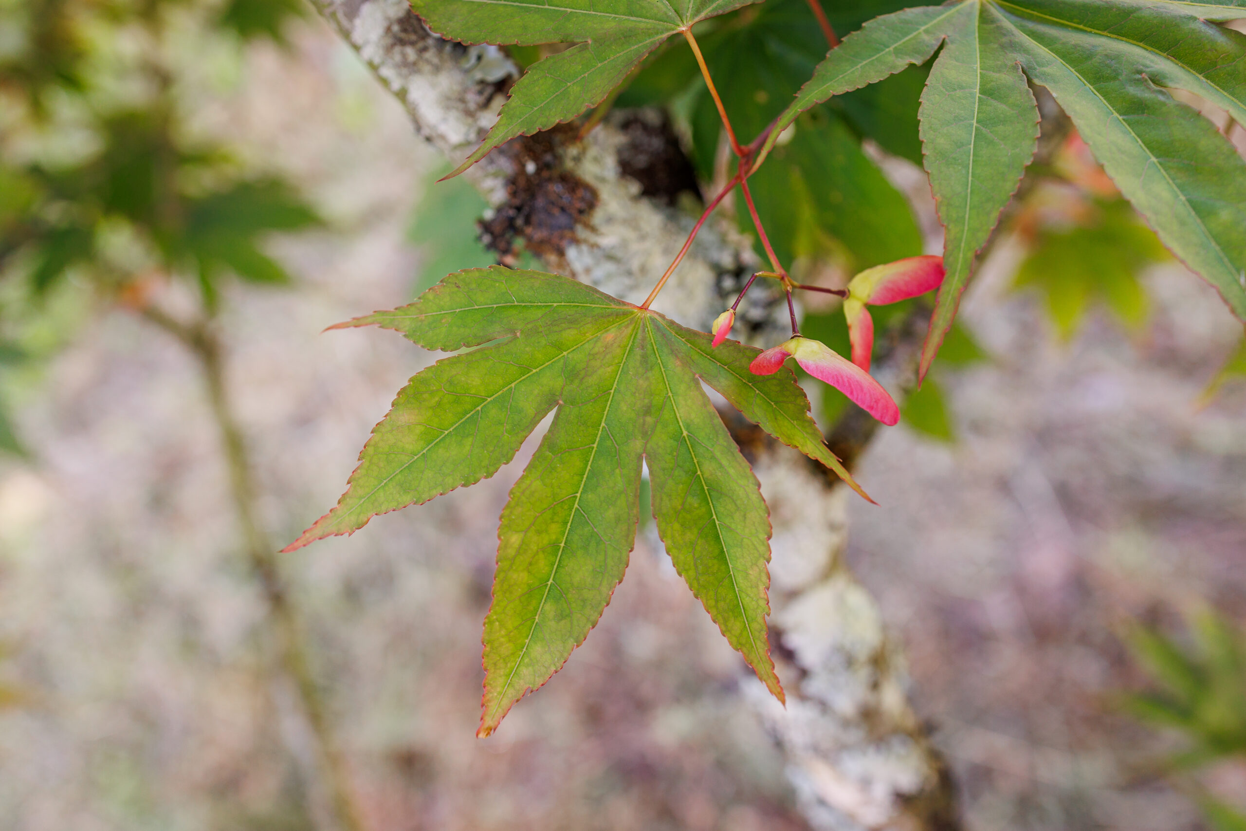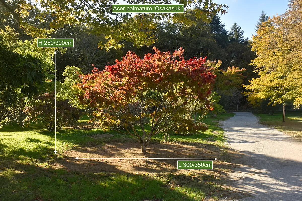 Feuilles plus grandes que l’espèce A. palmatum type. Il se colore de rouge vif et lumineux à l’automne.Son nom signifie ‘ semblable à la ville d’Osaka’.