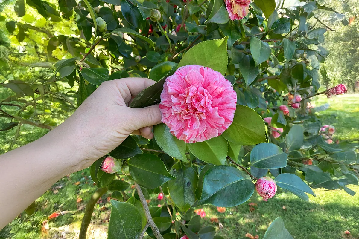 Ce ravissant Camellia centenaire provient de la collection des célèbres Pépinières Guichard à Nantes . La variété a été créé en 1860 en Italie.Les fleurs sont roses et striées de rouge.