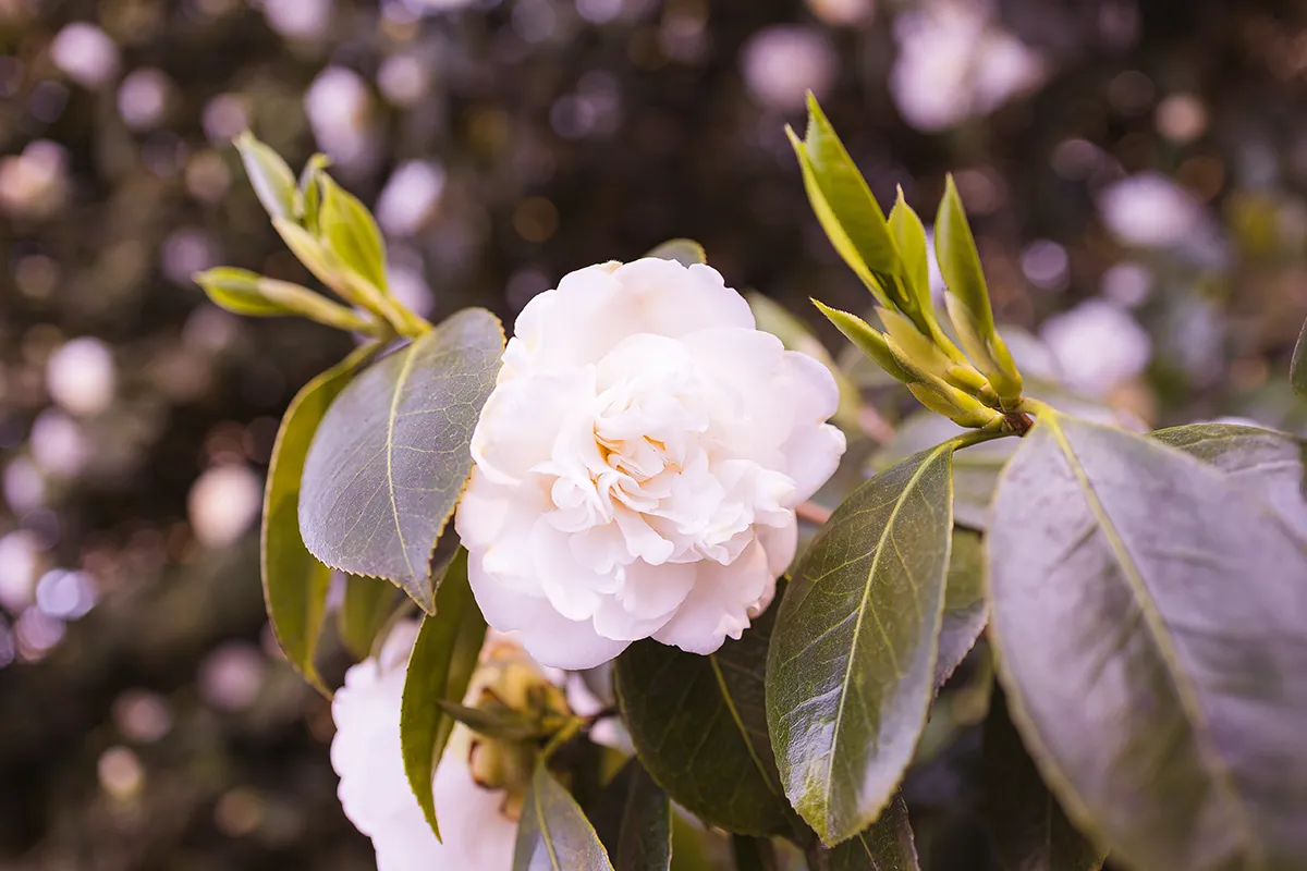 Ce Camellia centenaire provient de la collection des célèbres Pépinières Guichard à Nantes .Cette variété y a même été créée en 1920. Sa floraison dure plus de 2 mois.La fleur est de forme semi-double ou péoniforme.