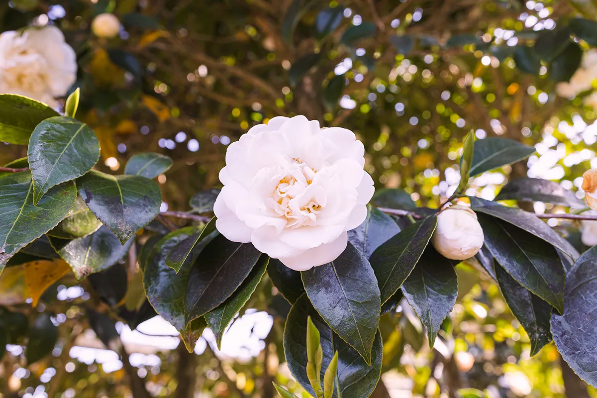 Ce Camellia centenaire provient de la collection des célèbres Pépinières Guichard à Nantes .Cette variété y a même été créée en 1920. Sa floraison dure plus de 2 mois.La fleur est de forme semi-double ou péoniforme.