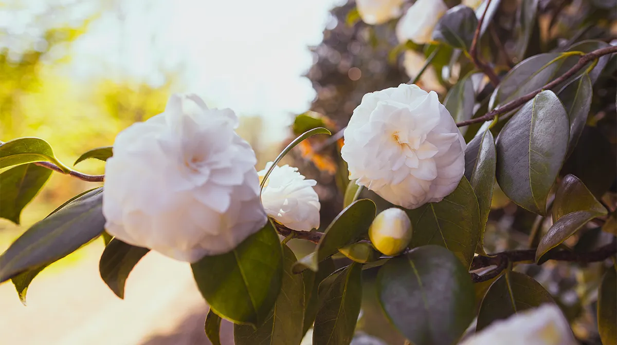 Floraison remarquablement longue – 3 mois – pour ce C. japonica centenaire issu de la collection des célèbres Pépinières Guichard, France . La variété a été créée en 1858 en Belgique, parfois dénommée ‘Beauté inconstante ‘.