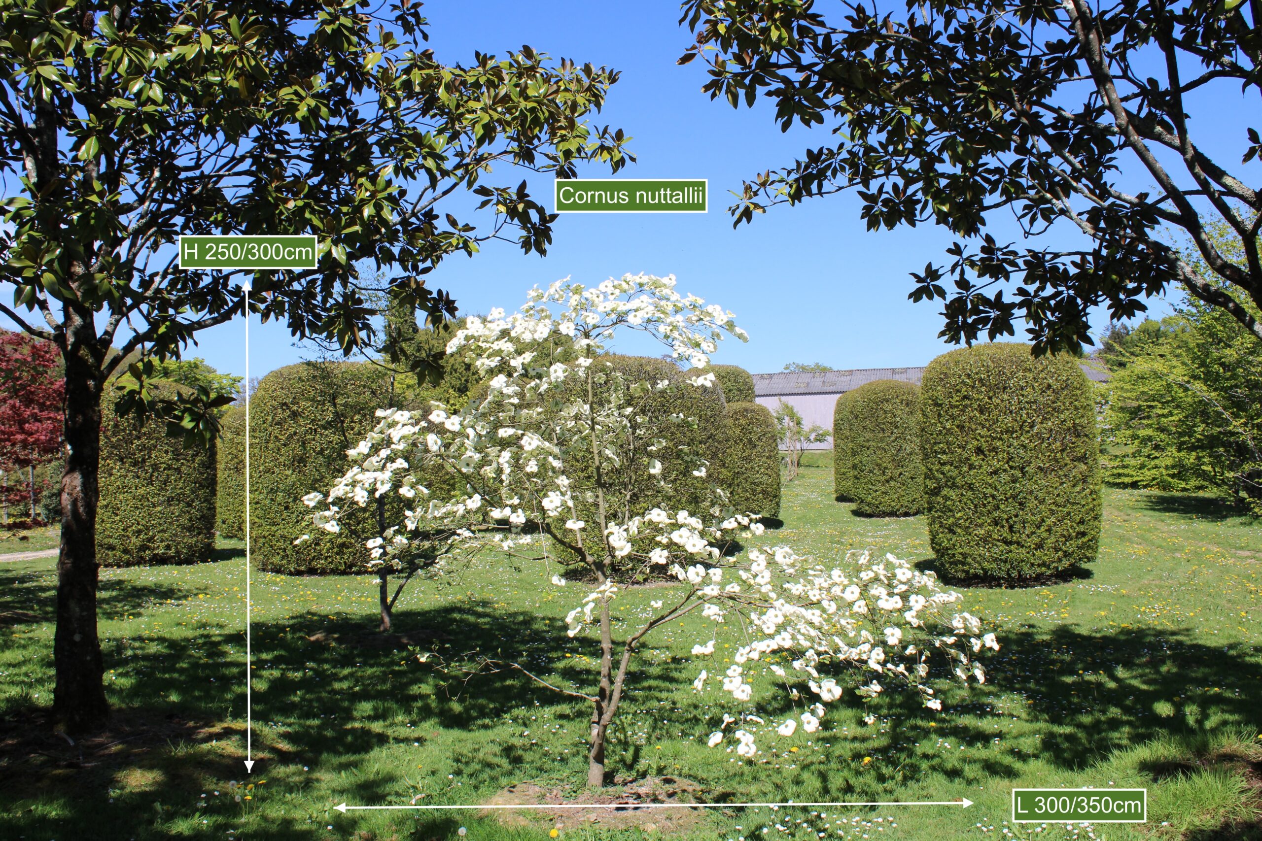Certainement la plus belle floraison de tous les cornouillers à fleurs! Cet arbuste originaire de la cote ouest des Etats-Unis se développe dans un sol frais et non calcaire. Ce sujet à la silhouette plus large que haute est à positionner de préférence dans un endroit lumineux mais protégé du soleil écrasant de l’été.
