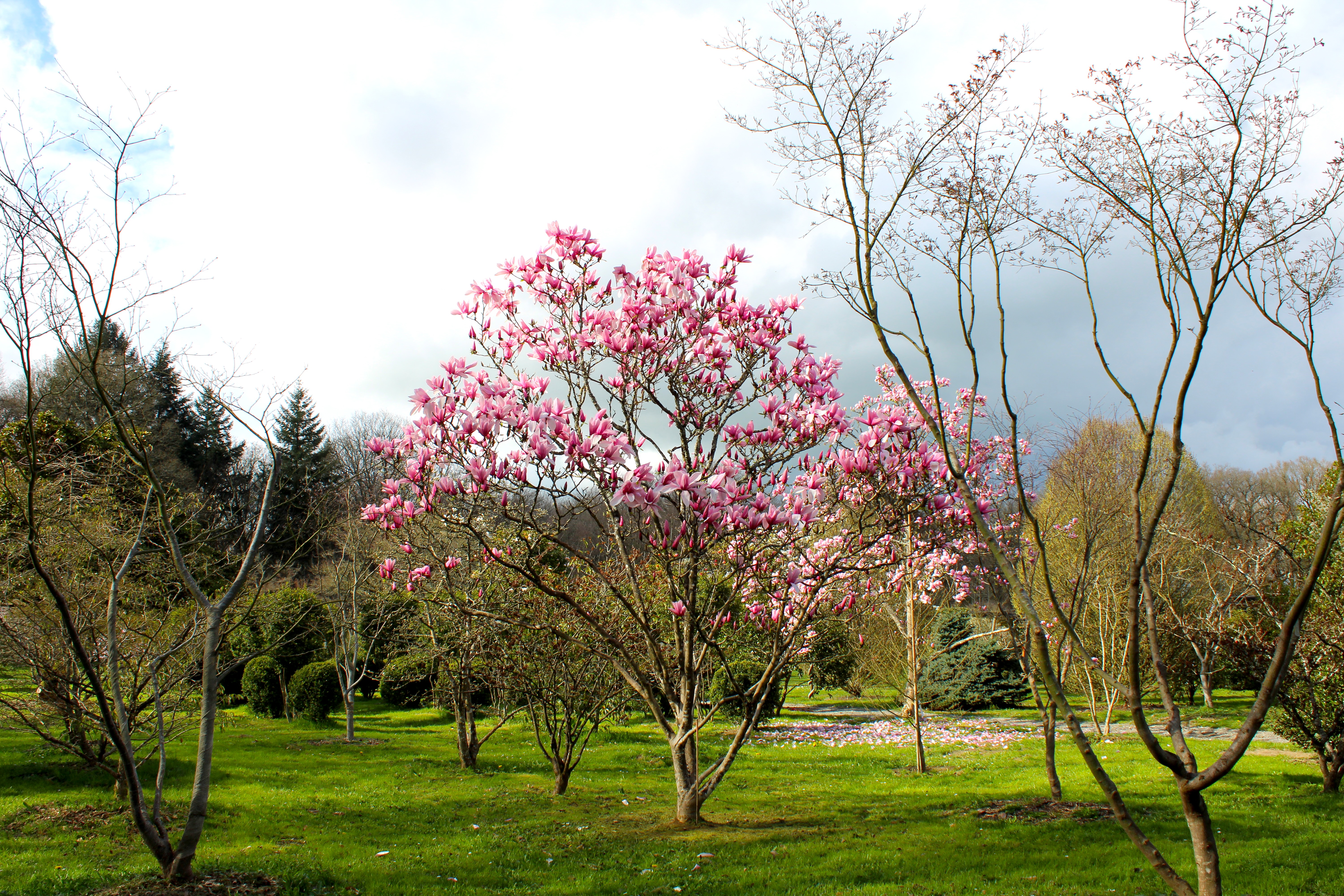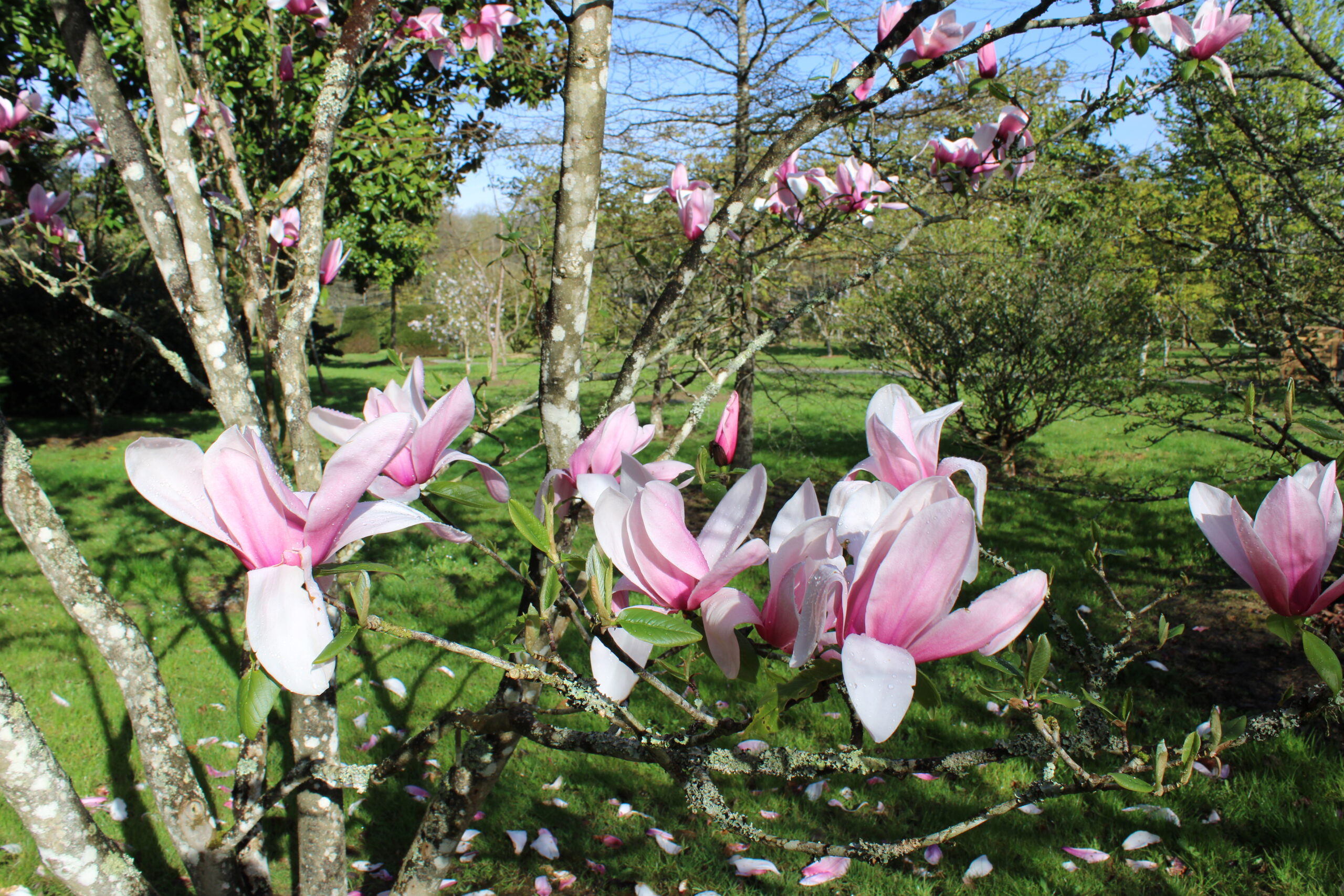 Une floraison des plus spectaculaires pour cet arbuste adulte, élancé, issu d’un croisement entre M. liliflora et M. campbellii. Ses immenses fleurs pourpres en étoiles larges en début de printemps s’éclaircissent en fin de floraison.
