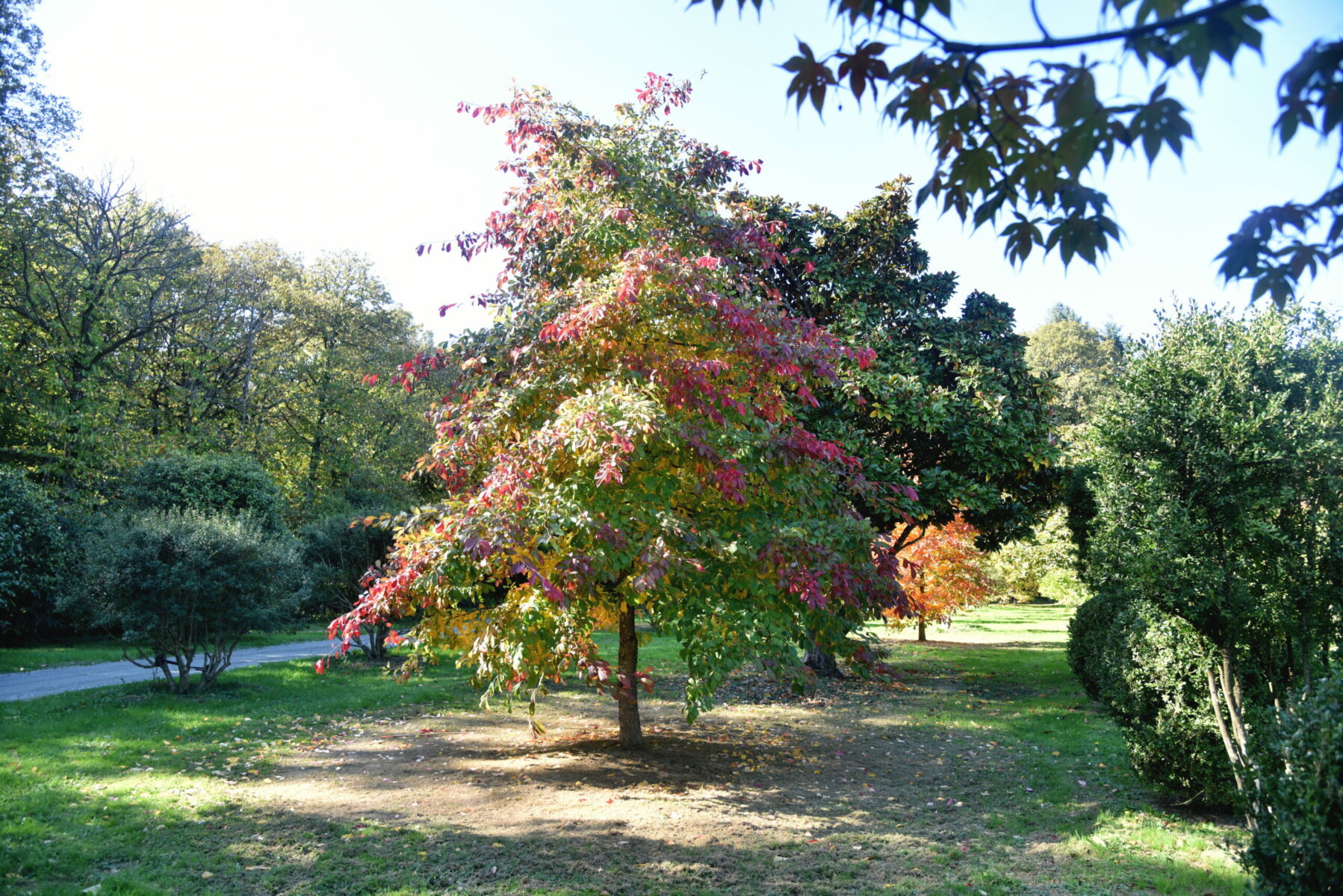 Également appelé Tupelo, mot amérindien signifiant « arbre des marais », le Nyssa sylvatica au port pyramidal prospère en sols frais. Ses feuilles de forme et de tailles variables sont d’un beau vert brillant qui à l’automne prend toute les teintes flamboyantes de l’été indien.