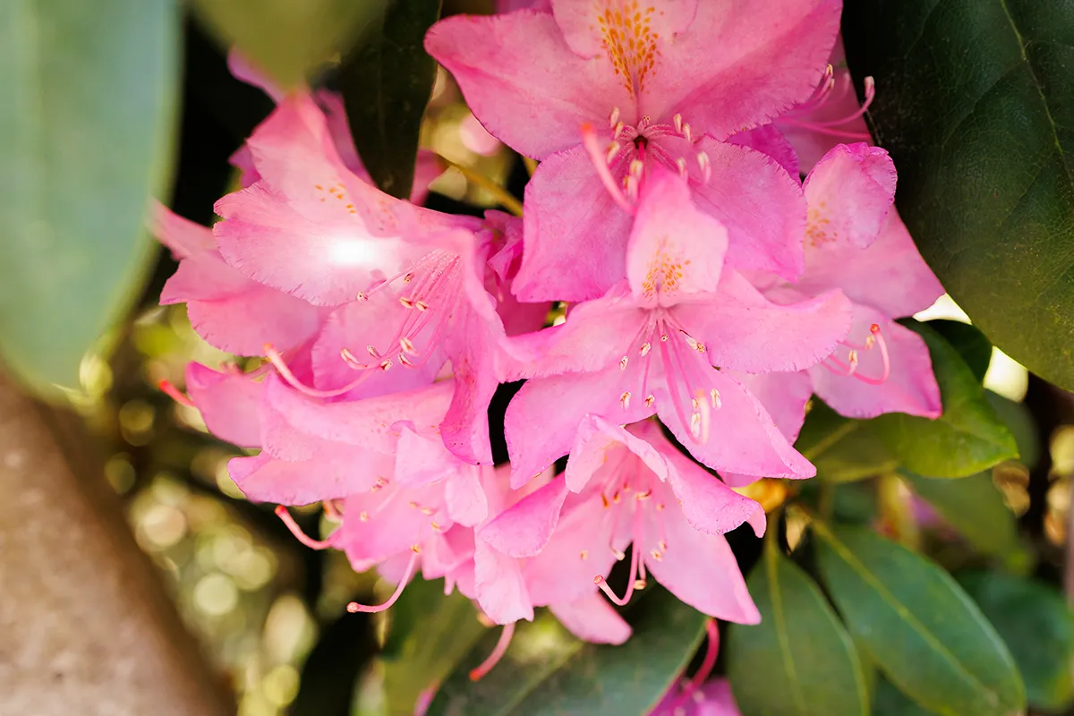 Très haut buisson couvert de grandes inflorescences roses soutenu en mai.